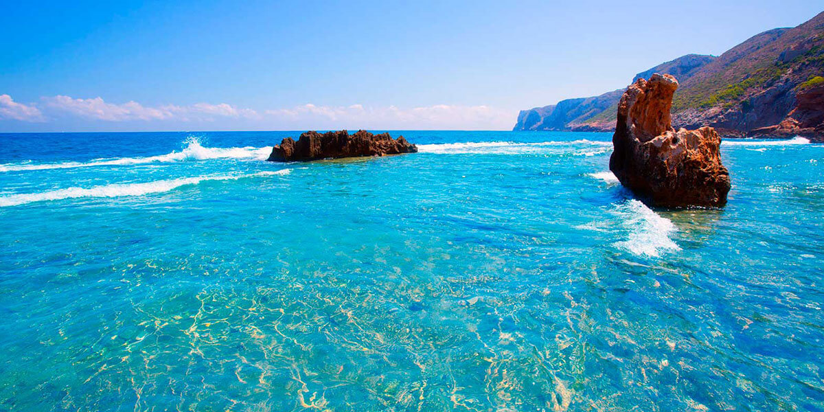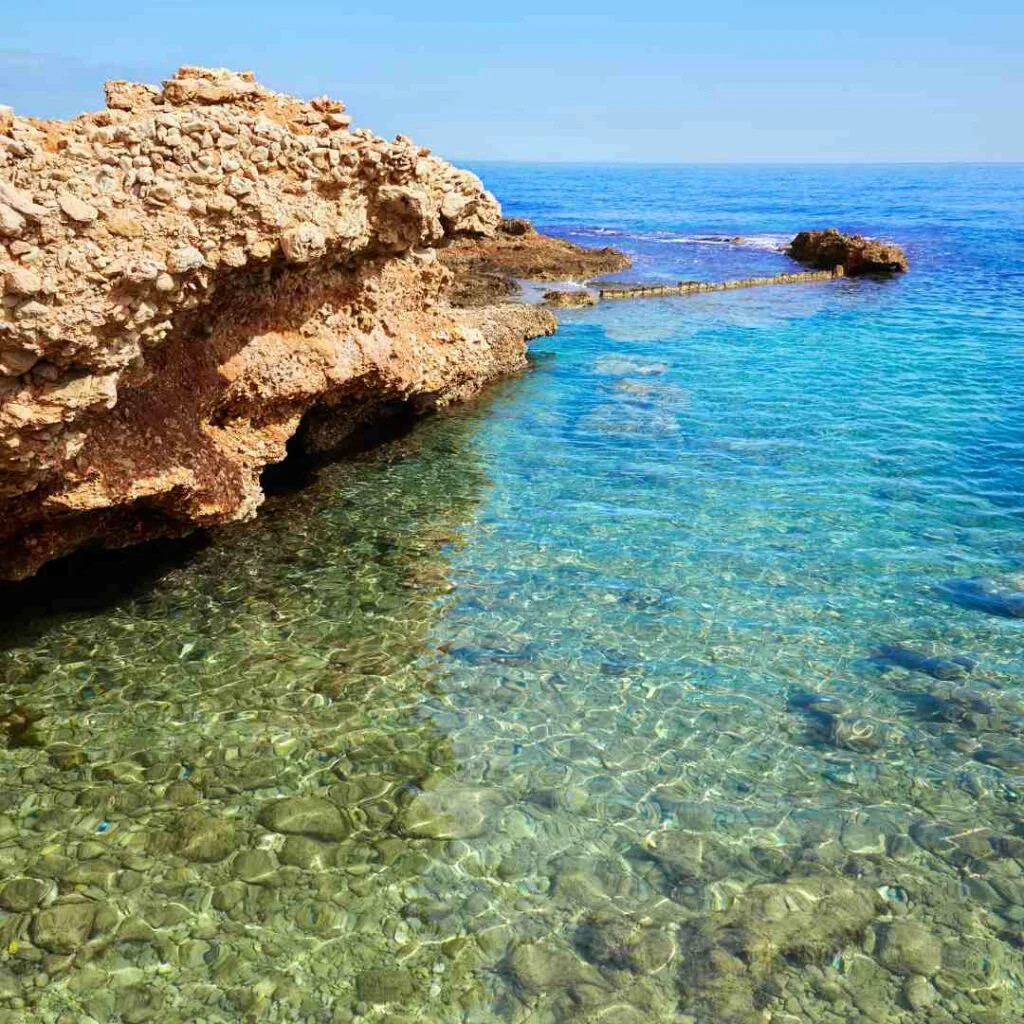 La Cala is a small and inviting rocky cove. The tonalities of its waters are surprisingly beautiful. Snorkeling is recommended./La Cala es una pequeña y acogedora cala rocosa. Las tonalidades de sus aguas son sorprendentemente hermosas. Se recomienda practicar snorkel.
